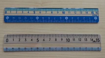 注)写真上の定規も、下半分(背景が青色)は0目盛が末端からずれてつけられています。