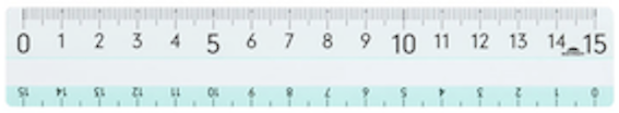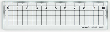 - Bタイプ(0目盛が末端と一致していない)、半透明の15cm定規