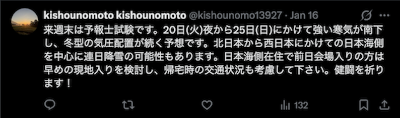 図2 Xの投稿(1月16日)